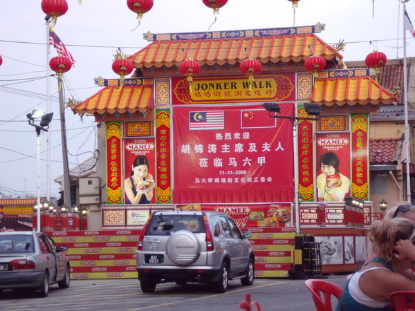 マラッカ ここも華僑の町、中国から政府要人が来るというので歓迎の垂れ幕が・・・ |