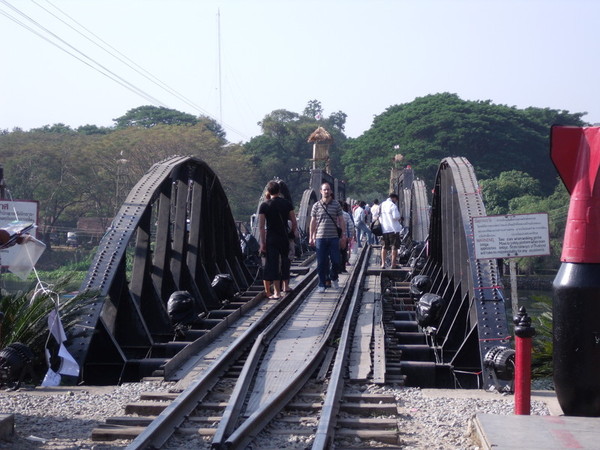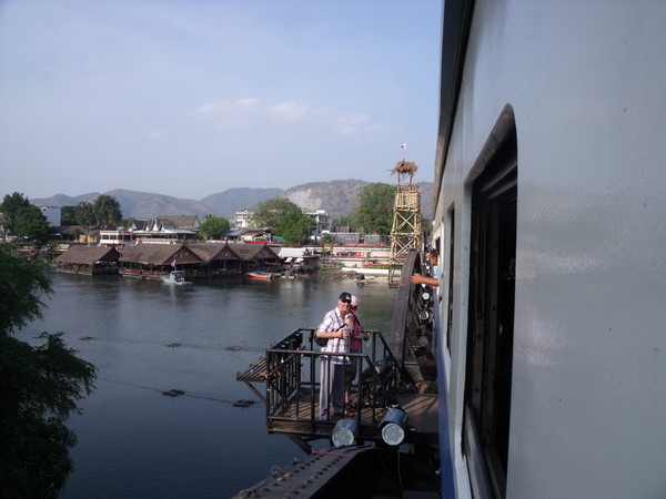 カンチャナブリ 徒歩で鉄橋を渡れるのだが、列車が来たときに避難する場所まである。 |