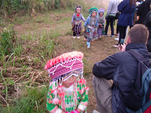 タイ プー・チー・ファー チェンライから日の出を見るためにラオス国境に近い山へ。少数民族ハナモン族の子供たちが民族衣装に着飾って寄ってくる。1写真1$ |