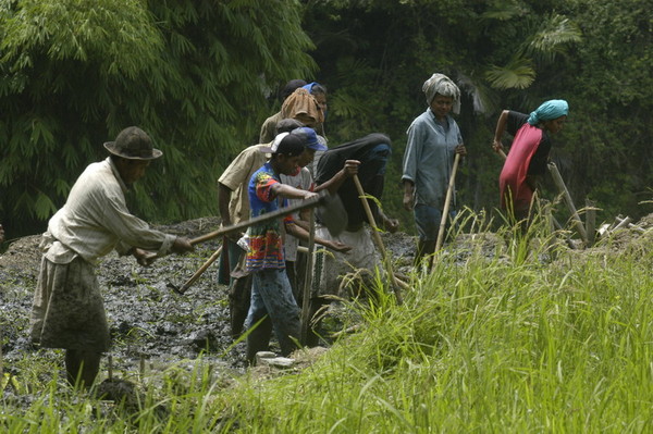 インドネシア フローレス島 一家総出のたんぼ作り。 |