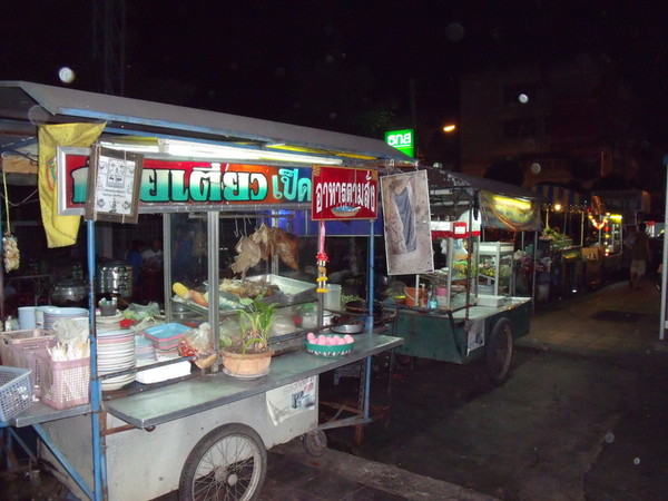 スコータイ 夜になると道端に屋台村が出現、数十バーツから食べられます。 |