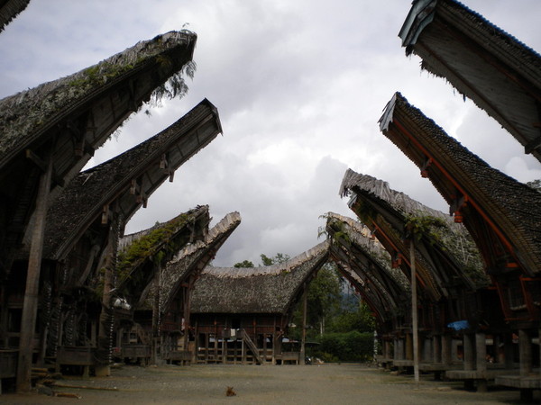 インドネシア スラウェシ島・トラジャ 船型をした民家・・内陸の山の中になぜ? |