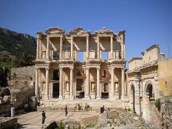 トルコ エフェス(世界遺産) 地中海最大級のローマ遺跡、図書館跡だそうです。白大理石が美しい。 |