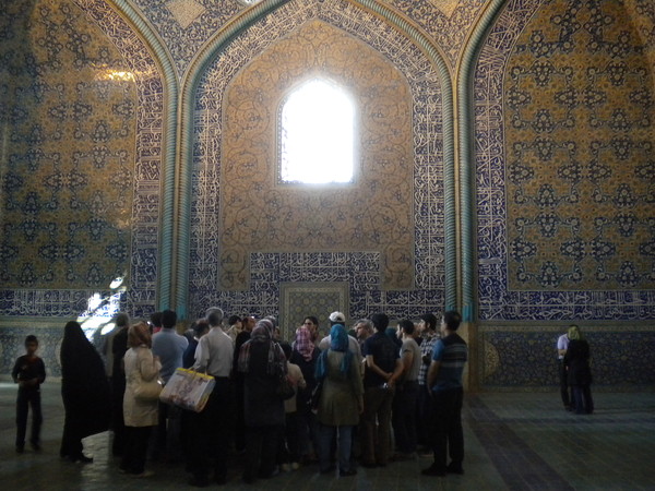 エスファハン モスクの内部は華麗な装飾で埋め尽くされている。 イスラム寺院ではどこでも青色が多く使われているのはなぜなんだろう? |