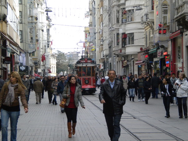 イスタンブル 繁華街 かわいい電車が走る。 実際観光用だけみたいだ。 |