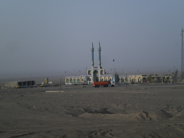シーラーズ〜マシュハド 砂漠の中に突然こんな立派なモスクが現れるが、周囲に人家はあまりない??? |