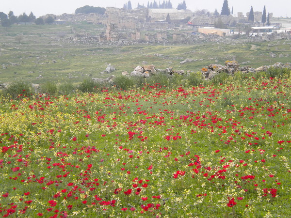 パムッカレの上の方にあるローマ遺跡 ヒエラポリス |