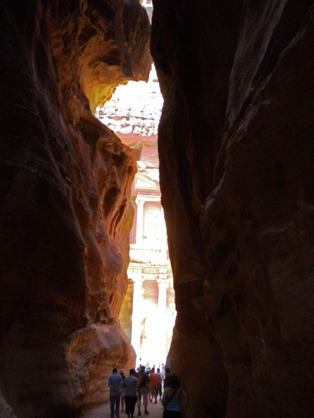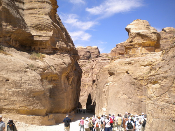 映画「インディ・ジョーンズ」でもおなじみの岩の回廊。その先に神殿。 ここまで20分+30分以上歩いてやっと遺跡の主要部にたどり着く。 |