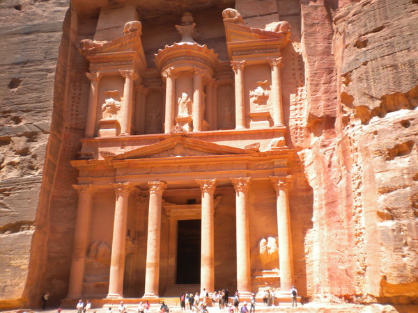 ヨルダン一の名所。 ペトラ遺跡(世界遺産) 入り口。ただし料金ゲートからここまで20分の徒歩あり。やれやれ。 |