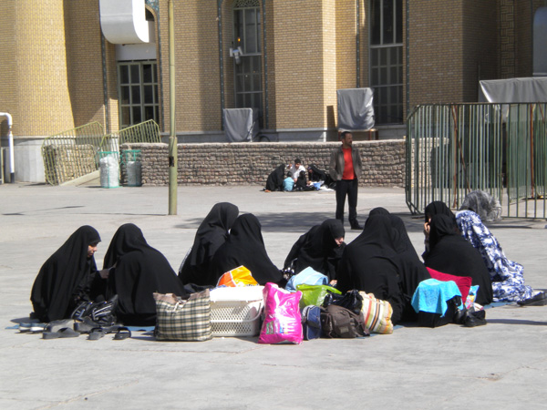 クム 聖地巡礼の女たち。 イスラム教国では女性の写真は御法度、見つかれば下手をすると袋だたきになるとあって、こわごわ遠くから望遠でこっそり。 または風景を撮るふりをして素早く盗み撮り。 |