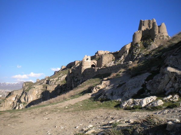 トルコ ワン ワン城 古城から見るワン湖と遙か雪をいただく山並みはすばらしく、 ただちょっとセンチメンタルな気分に・・ |