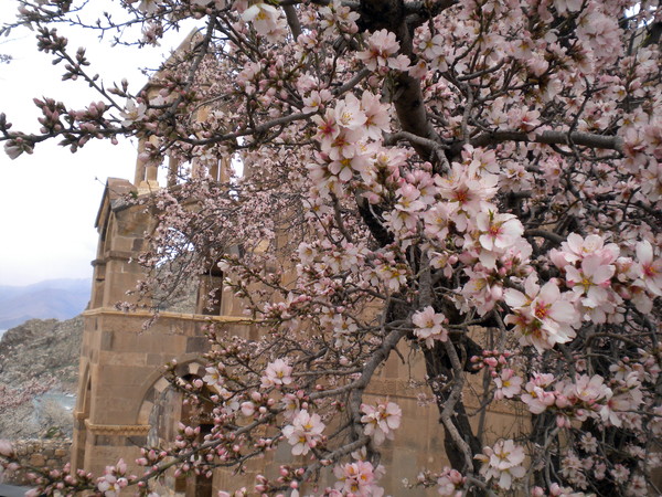 ワン湖に浮かぶアクダマル島にあるアルメニア教会。(世界遺産) アーモンドの花がきれいだった |