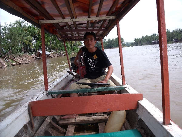 ラオス・コン島にて 島と島の渡しの船頭さん |
