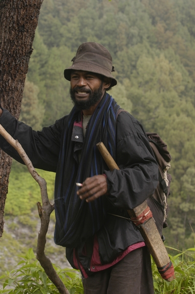 インドネシア・フローレス島にて 山頂の物売りのおじさん。 島の古謡みたいなものを聞かせてくれた。じつに味がありました。 |