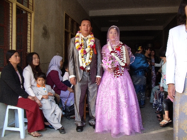 ミャンマー マンダレーにて 緊張気味の新郎新婦 |