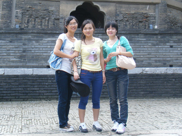 中国・蘇州にて バスで席を譲ってくれ、虎丘をガイドしてくれた女子大生3人組 (ガイド志望だそうだ) |