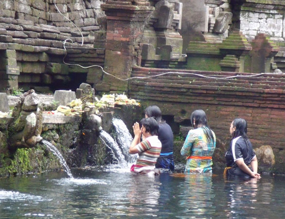 インドネシア・バリ島にて 信仰深い人々が聖なる泉にて沐浴。結構冷たいです。 |