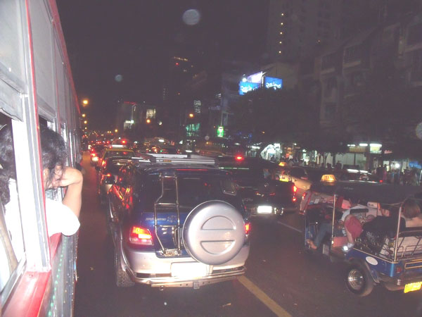 タイ・バンコクにて 夜9時過ぎても名物の渋滞は続きます。 |