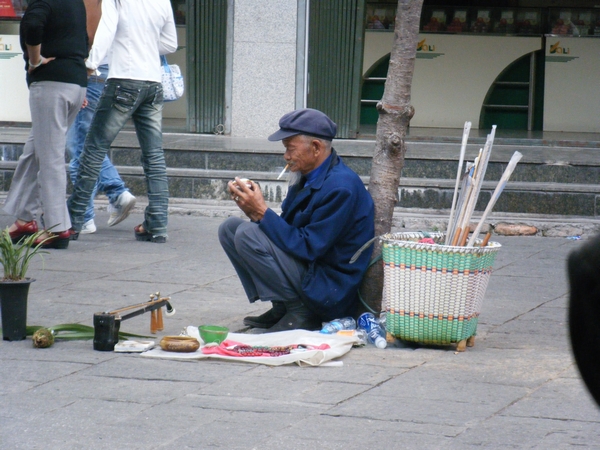 中国・大理にて 路端でござを広げ、なんやらガラクタみたいなものを売り出しましたが、ほんとに買う人いるのかなー。 |