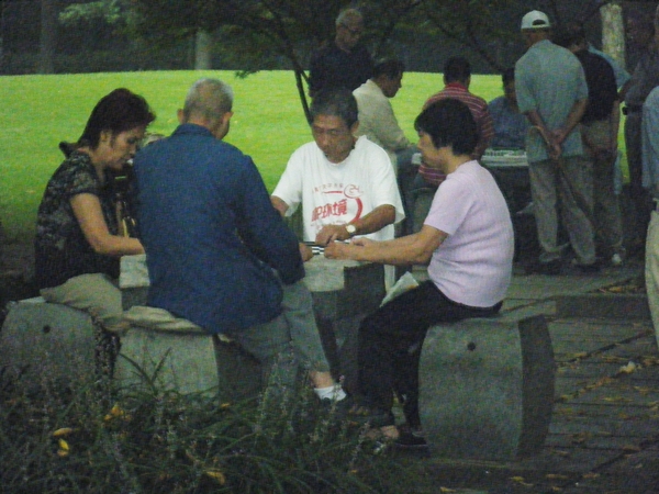 中国・杭州にて 朝早くから公園でマージャンですか、頭の体操? |