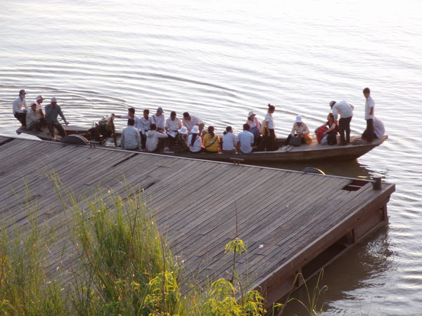 カンボジア・クラッチェにて メコンの渡し。通勤通学者乗りようも多いみたいです。 |