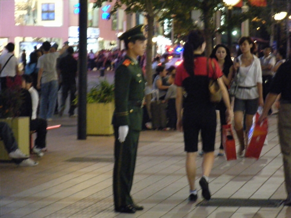 中国・北京にて 繁華街王府井にて微動だぞせず監視?する公安。街のあちこちに立っていた、ご苦労様です |