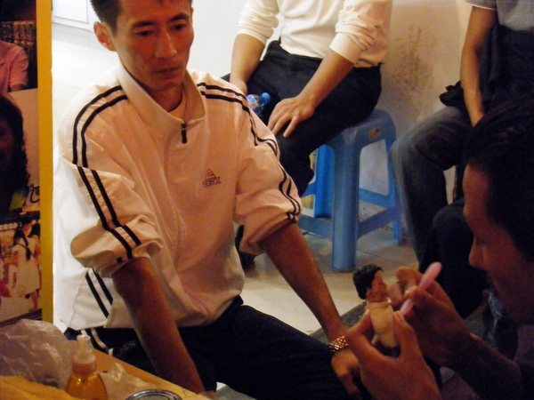 中国・北京にて 似顔絵ならず似顔粘土細工です。ほんの15分くらいで作っちゃいます。 |