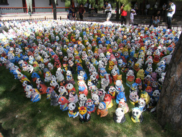 中国・北京動物園にて パンダの群れ、子供たちに人気があります。 |