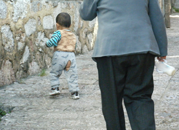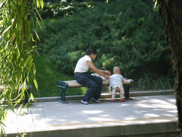 中国・北京にて 天安門近くの木陰の涼しい公園で、尻割れ小僧! |