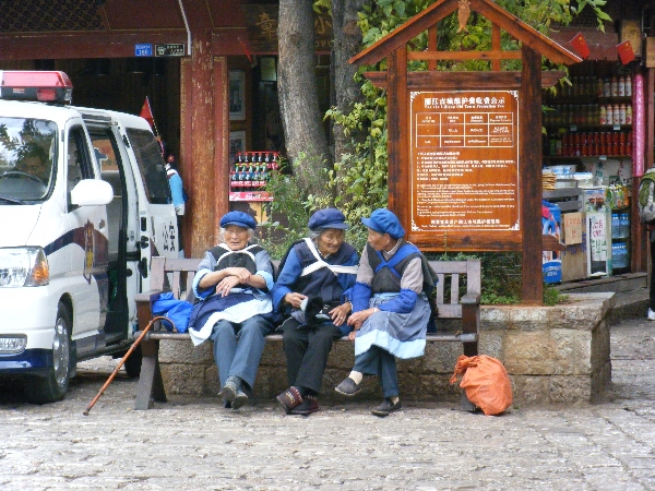 中国・麗江にて ナシ族のおばあちゃんが楽しそうにおしゃべりしていました。 |