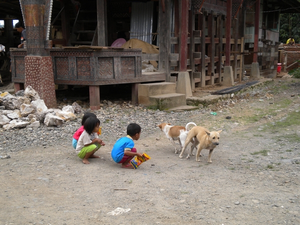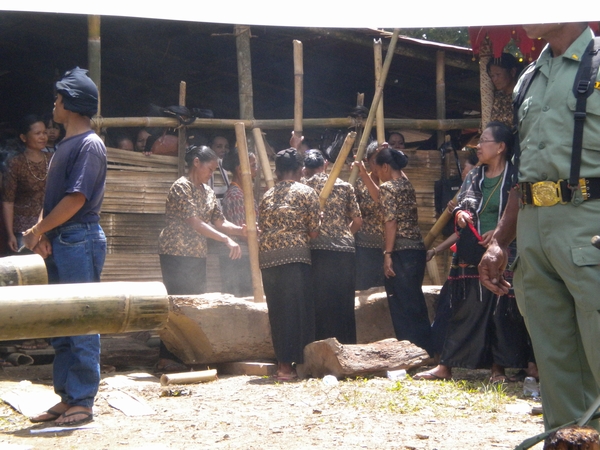 インドネシア・スラウェシ島にて 葬儀の一部が行われている最中に杵を付きながら唄われていた。 |