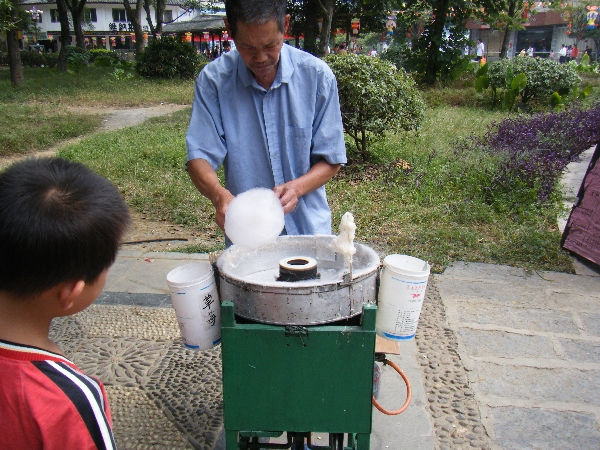 中国・桂林(陽朔)にて 日本のお祭りにも欠かせない綿菓子です。 |
